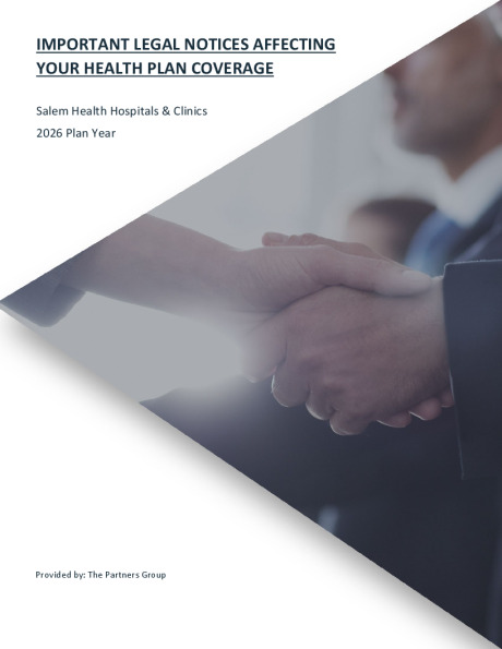 While every effort has been made to ensure accuracy of this guide, the plan documents and contracts will prevail in case of discrepancy between this Website and the plan documents and contracts. Salem Health reserves the right to amend or terminate any benefits at any time.