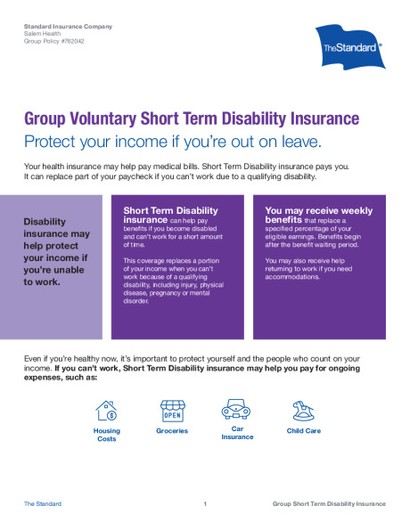 Benefit eligible employees can elect to purchase voluntary short-term disability coverage the first of the month following 90 days of employment.